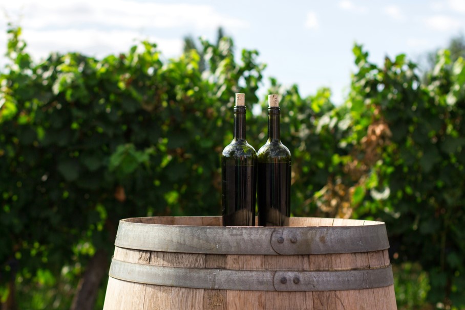 Wine bottles on a rustic barrel Photo by Rodrigo Abreu on Unsplash